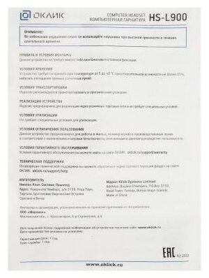 Купить Наушники Oklick с микрофоном, HS-L900, черные, 1,6 м, накладные (1532022)