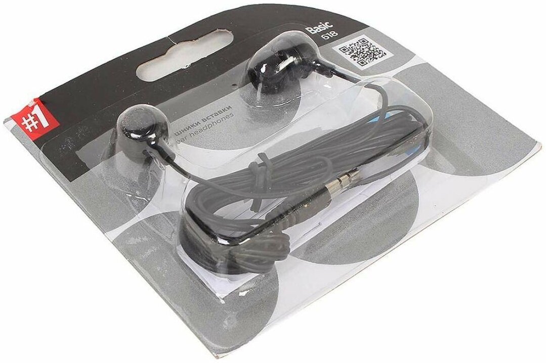 Наушники Basic 618, вакуумные, 95 дБ, 32 Ом, 3.5 мм, 1.1 м, черные, 2 шт.