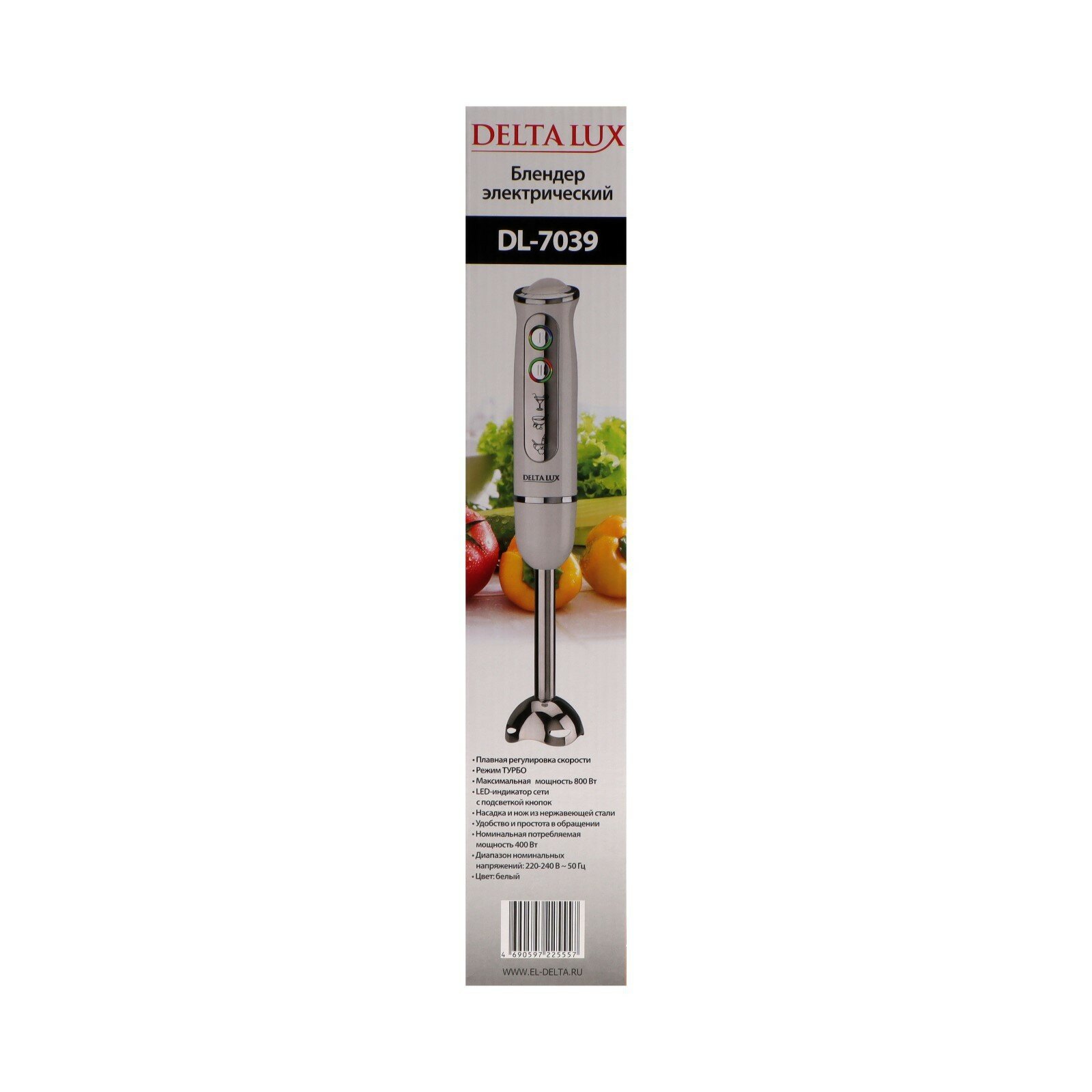 Блендер DELTA LUX DL-7039, погружной, 800 Вт, 1 скорость, режим "турбо", белый