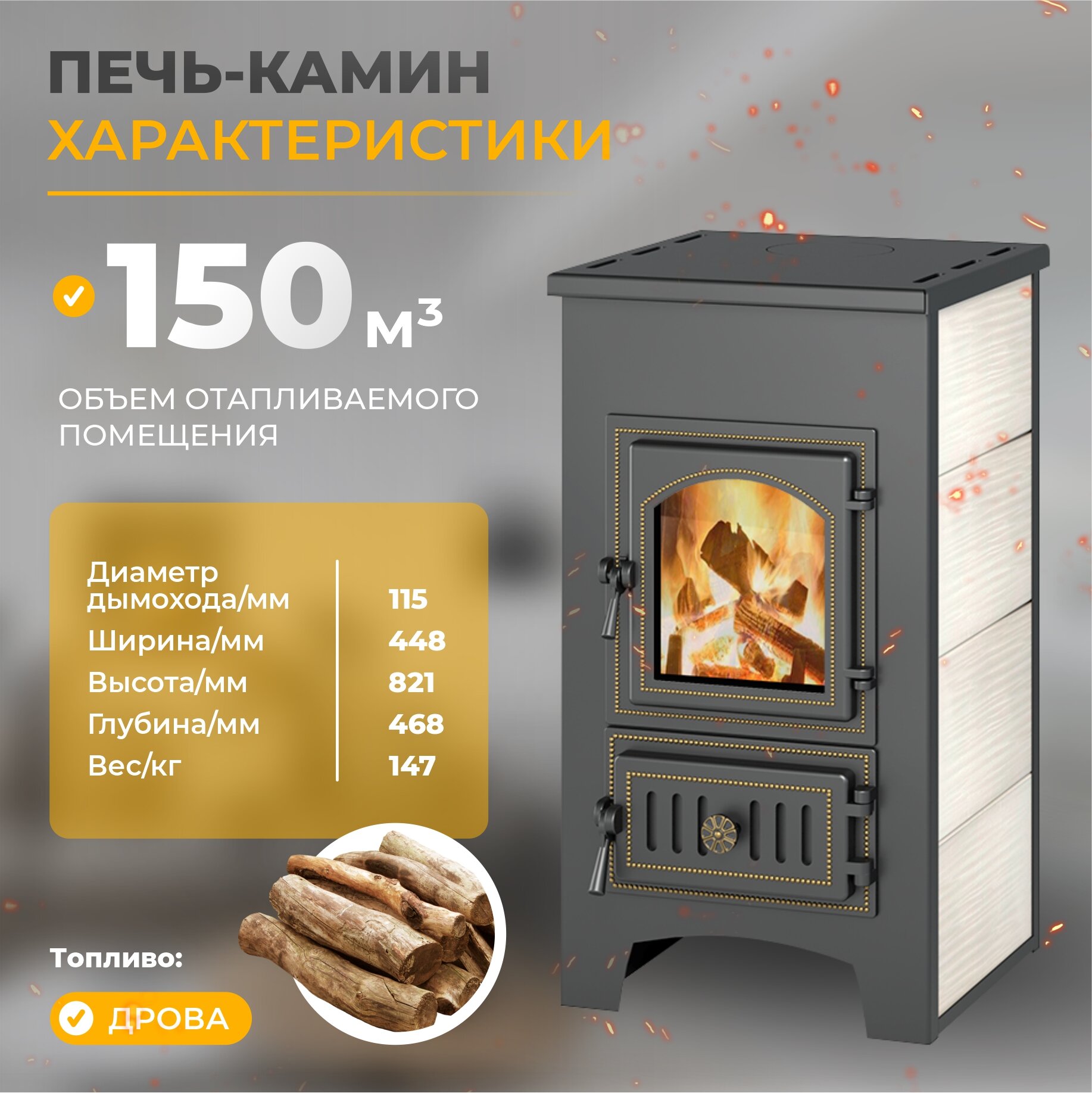 | Отапливаемый объем | 150 м³ |
