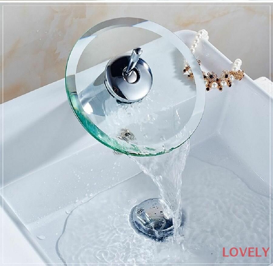 Смеситель для раковины A9090, однорычажный, водопад, стекло, хром