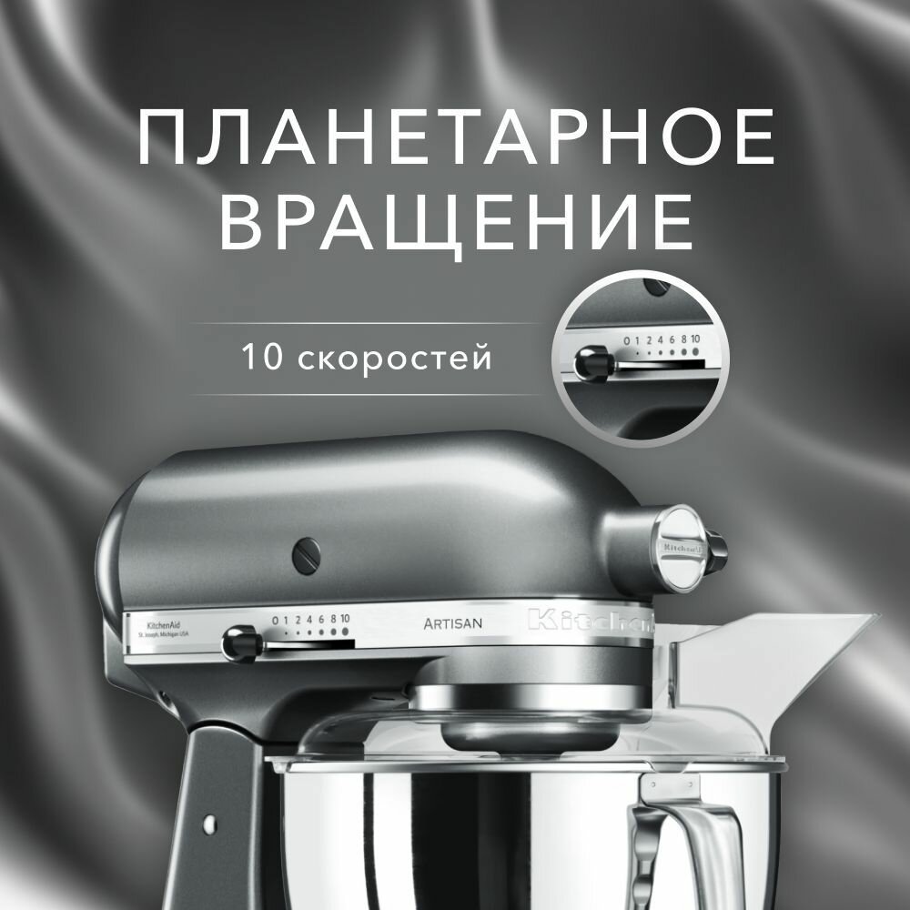Миксер планетарный KitchenAid ARTISAN 5KSM175PSECU 4,8л. Серебристый по контуру