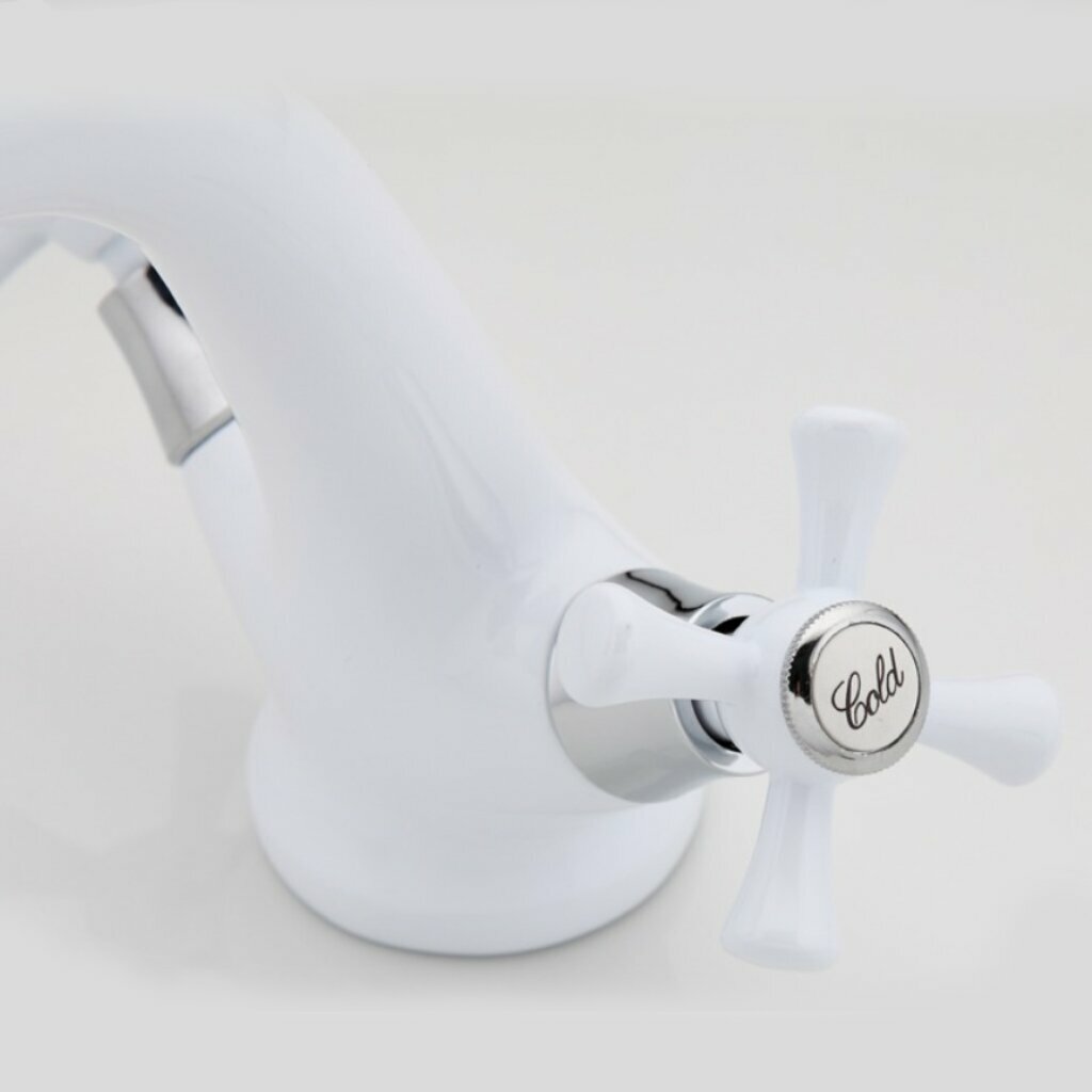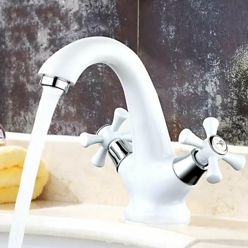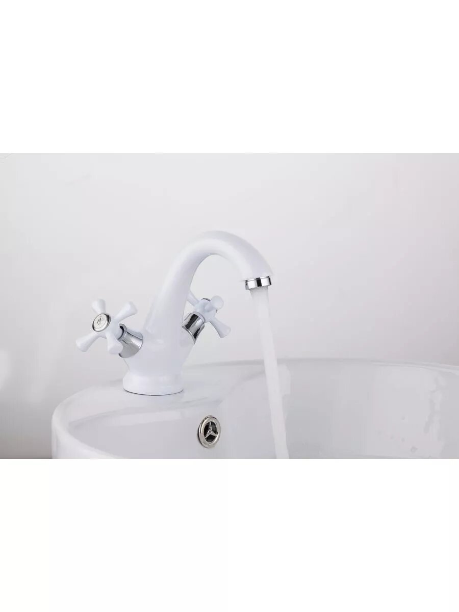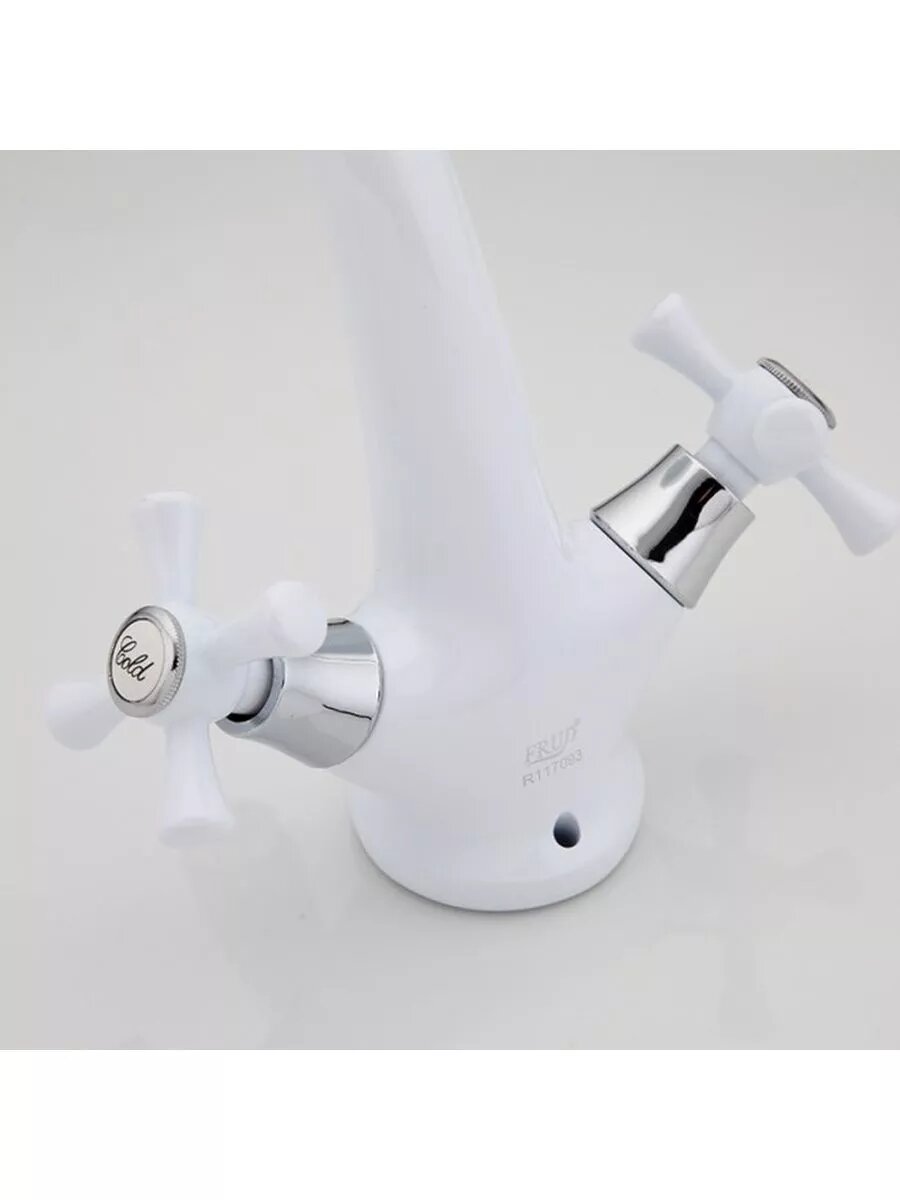 Смеситель для раковины (умывальника) Frud R10332 белый, силумин, фиксированный излив, управление вентильное интересное: