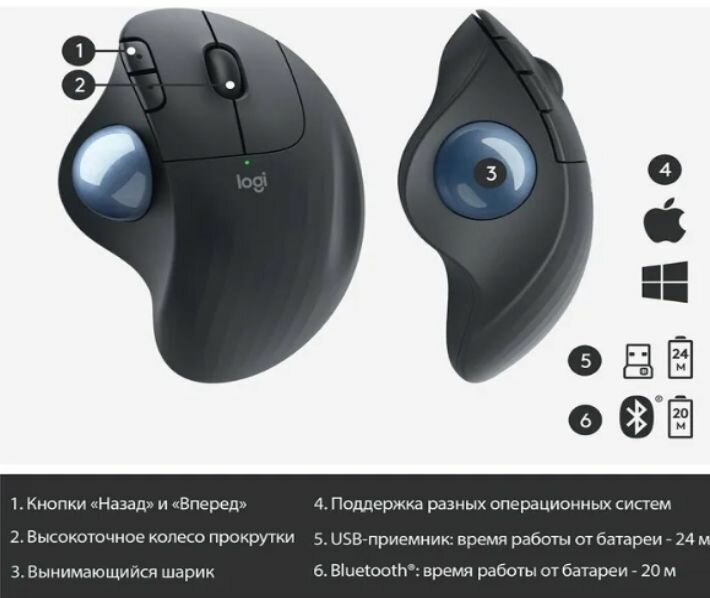 СохранитьLogitech ERGO M575, беспроводная мышь Bluetooth черного цвета интересное: