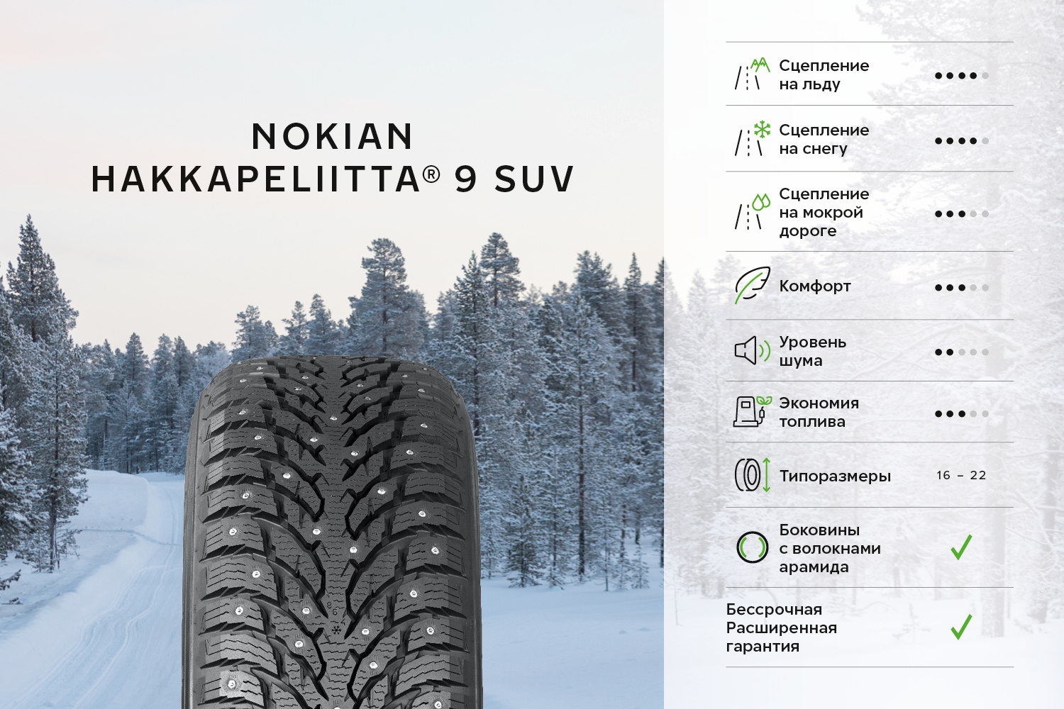 Шины Nokian Hakkapeliitta 9 SUV 285/40R22 110T Шип