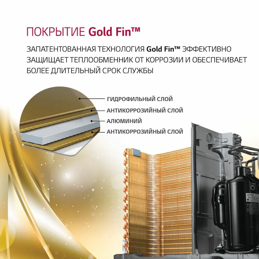 1) Инвертор, что обеспечивает низкое энергопотребление (10 лет гарантии); 2) Тихий, слышно только шелест ветра (на min воздушном потоке); 3) Простая установка, благодаря монтажной площадке; 4) Покрытие GoldFin испарителя наружного блока. 5) Функция умной диагностики (о ней поподробнее ниже) |