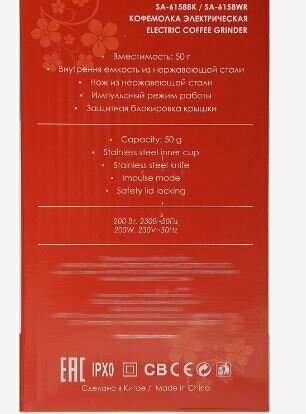 Кофемолка электрическая SAKURA SA-6158BK, 50 грамм, 200 Вт ( OL)