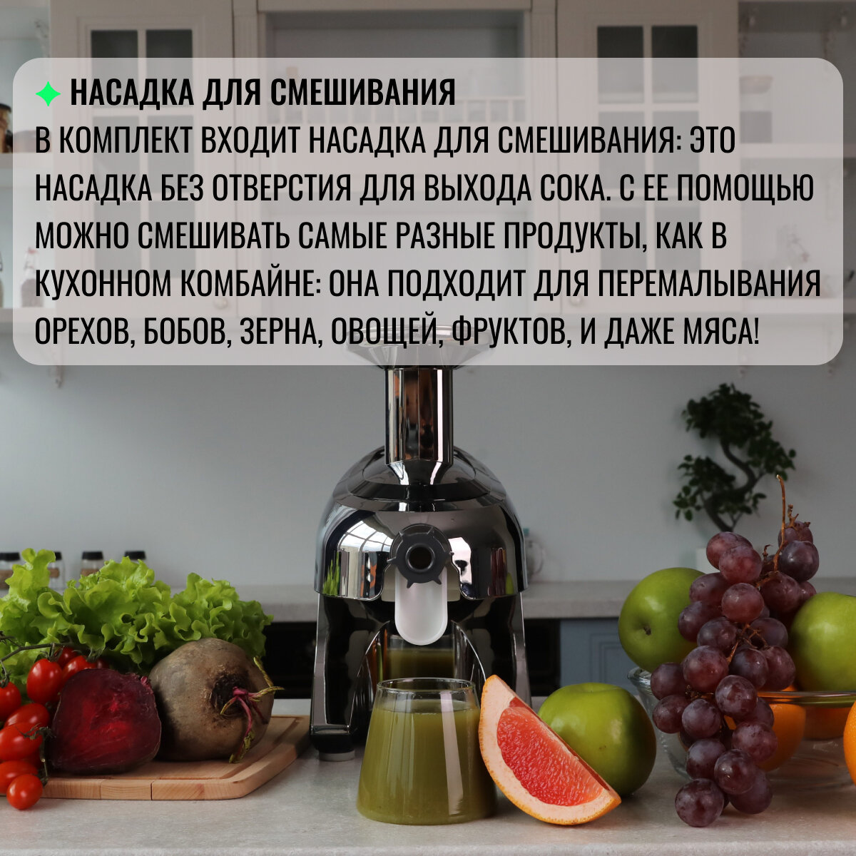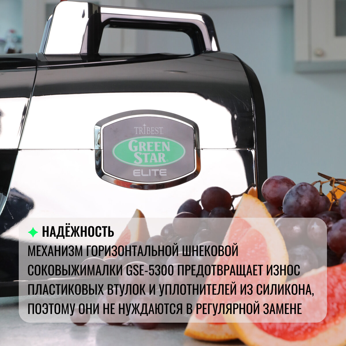Соковыжималка двухшнековая горизонтальная Tribest Green Star Elite интересное: