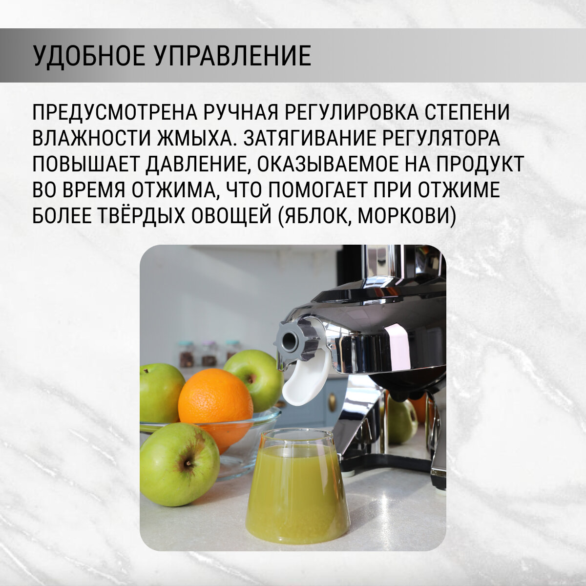 | Плюсы: | Замечательная функция автоматического отброса мякоти! Очень удобно использовать в промышленных и домашних масштабах! Отличное качество по приемлемой цене. |