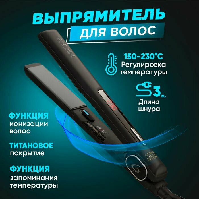 Выпрямитель для волос GA.MA G-STYLE TITANIUM ION титан плоскс цифр t 150-230°C,ион, 28х90 мм, ч