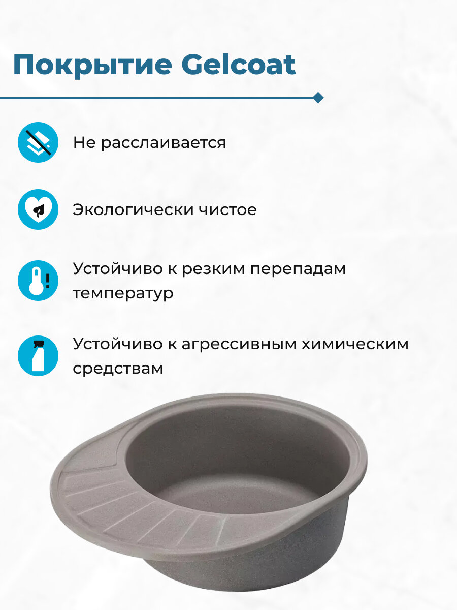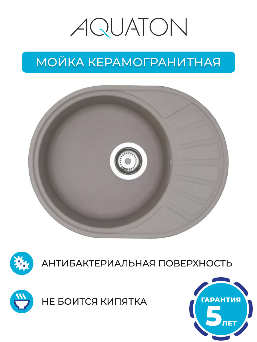 Мойка для кухни Aquaton Чезана серая круглая с крылом 1A711232CS230