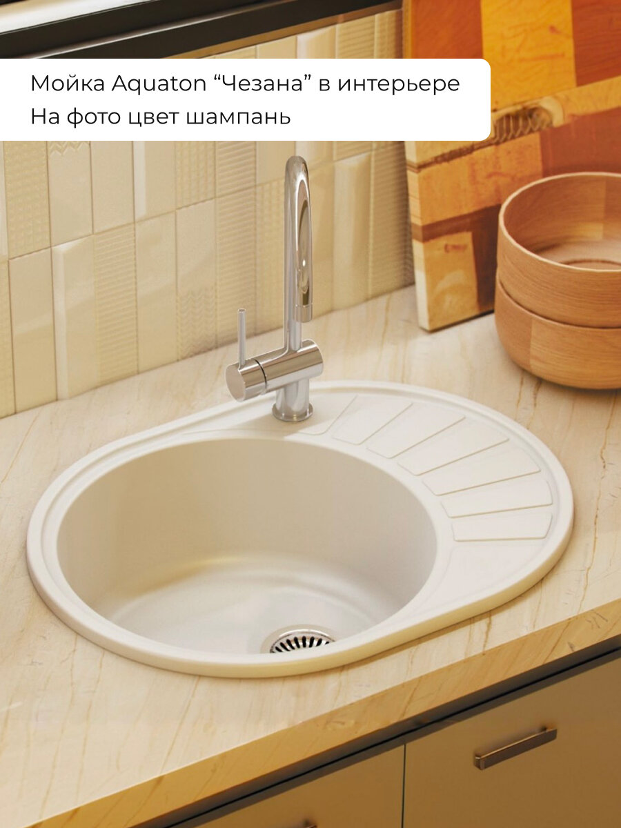 Мойка для кухни из литого мрамора AQUATON Чезана круглая с крылом шампань 1A711232CS290 *
