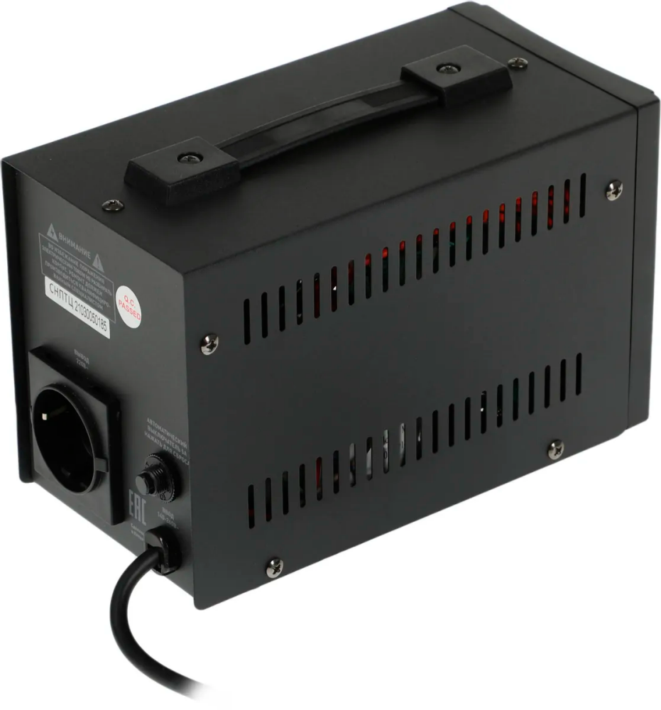 | Минусы: | Грубая работа: +- 9% от 220 вольт выходного. Индикатор выходного напряжения врёт: специально стабилизировали цифры, всё время показывает 220+-2, хотя на выходе может быть и 205, и 238. Щёлкает реле. Задержка включения перестала работать через пару часов использования. Алюминиевый трансформатор. Сильно воняет резиной первую неделю использования, запах заполнил всё помещение. Качество сборки оставляет желать лучшего. |