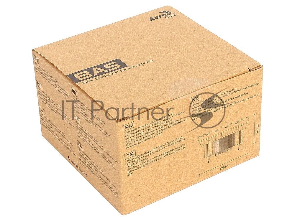 Кулер Aerocool BAS , INTEL, TDP 100W, screws, 122x122x63mm, 1200rpm, LGA 1150/1151/1155/1156