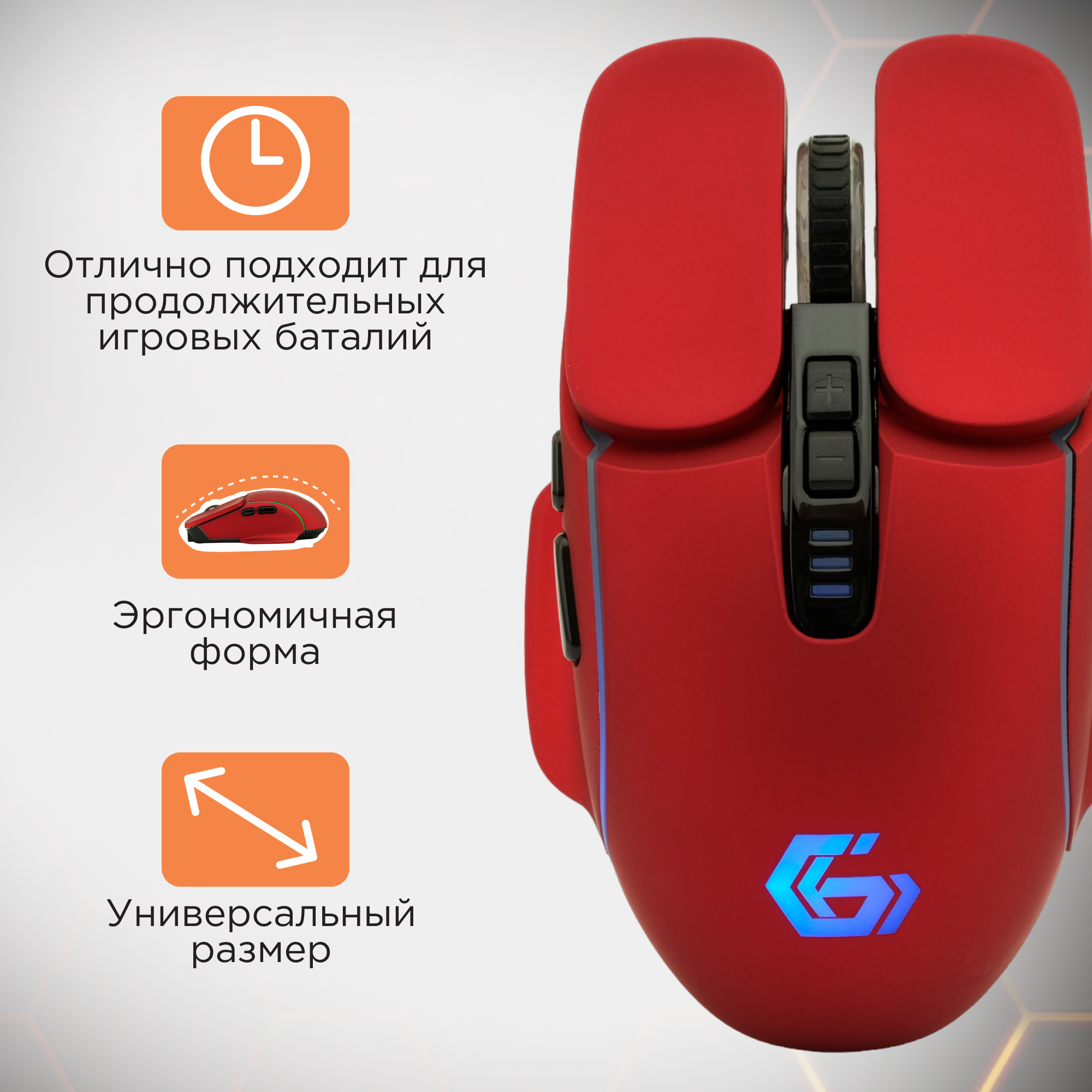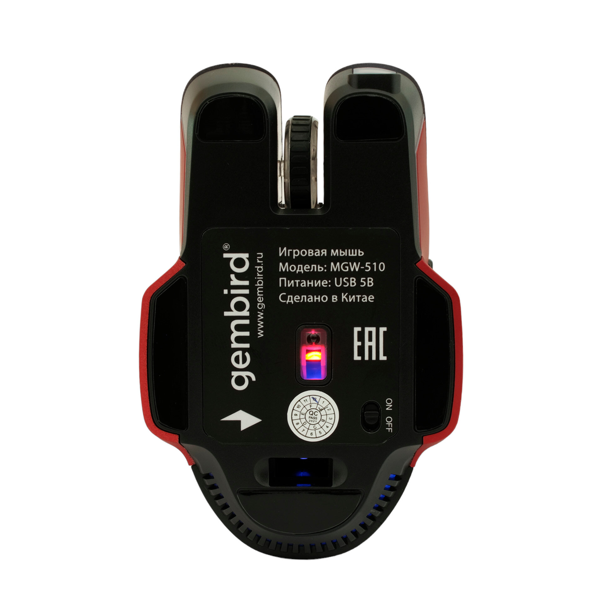 Купить Игровая беспроводная мышь Gembird красная 2400 DPI с подсветкой и радиоканалом MGW-510