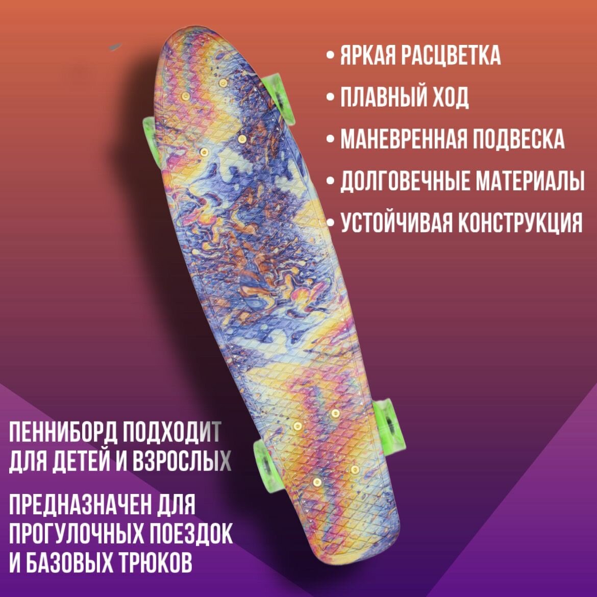 СохранитьСкейтборд пластиковый (пенни борд) для детей и взрослых с принтом и светящимися колесами Triumf Active Firewave (огненная волна) 22 дюйма интересное: