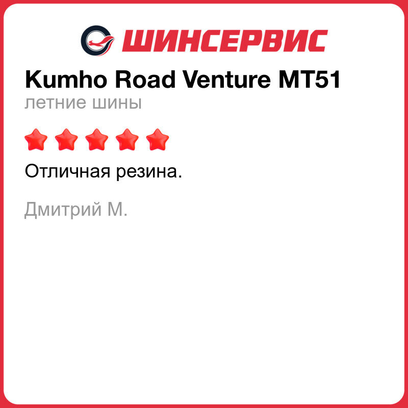 Кумхо 2357515 Q 110107 MT-51, KUMHO 2168653 (1 шт.)
