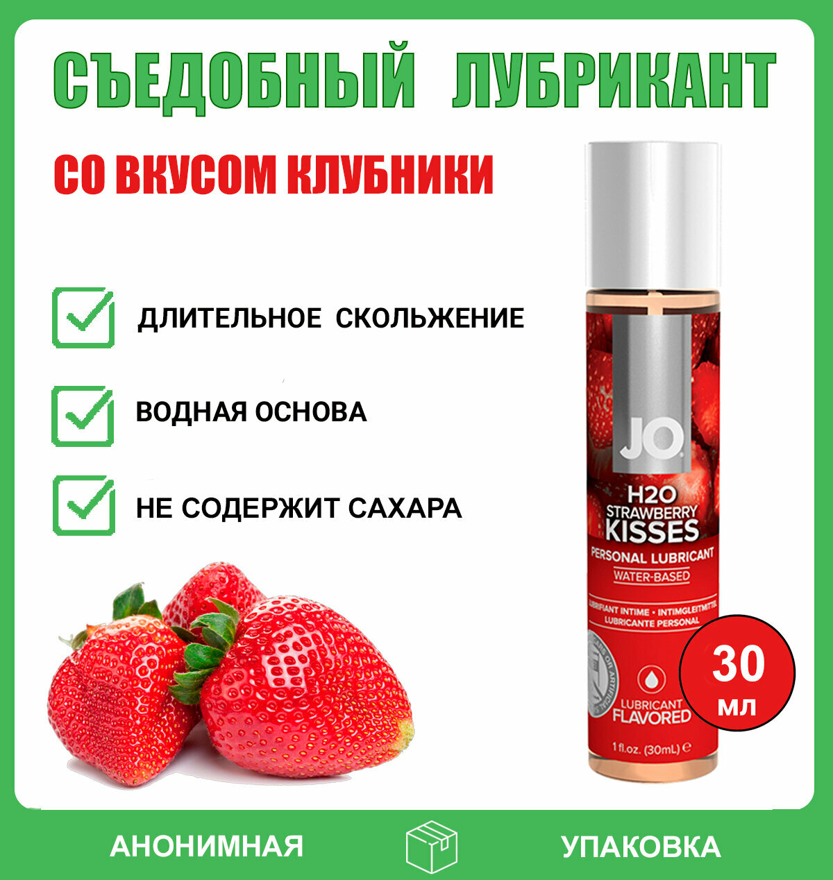 Гель-смазка JO H2o Strawberry Kisses, 30 мл, клубника, 1 шт.