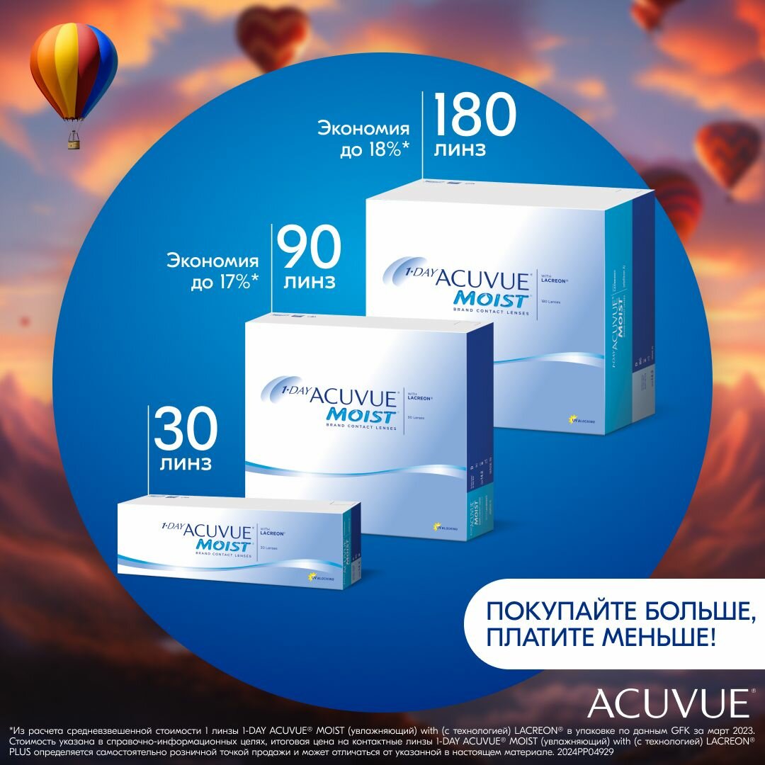 СохранитьACUVUE Контактные линзы 1-Day Acuvue Moist (30 pk), 30 шт., -9.50 /9.0/ Однодневные интересное: