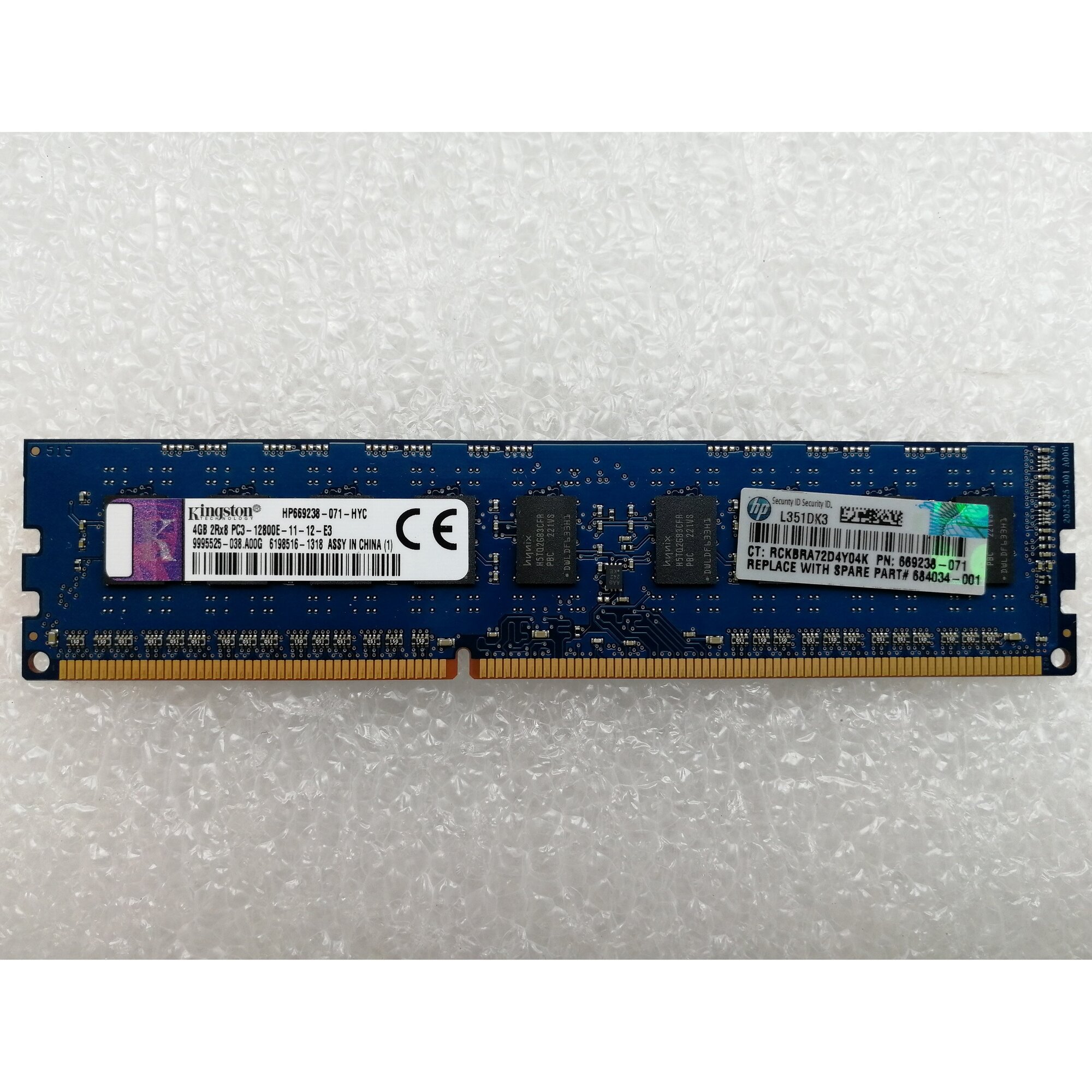 Оперативная память HP 4GB (1x4GB) Dual Rank x8 PC3-12800E (DDR3-1600) Unbuffered CAS-11 Memory Kit 669322-B21