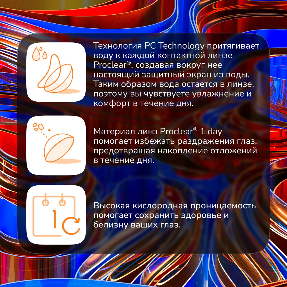 СохранитьКонтактные линзы Proclear 1 Day, 30 шт., -3.50, R:8,7, режим ношения:дневной интересное: