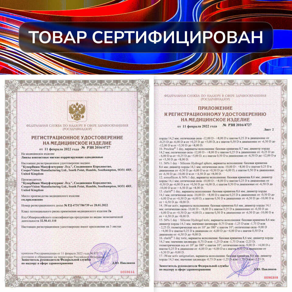 "Контактные линзы CooperVision Proclear 1 day (30 линз) +5.50 R 8.7, однодневные, прозрачные"
