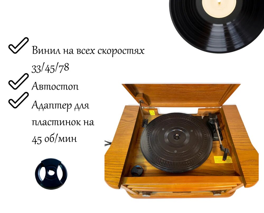Ретро-проигрыватель Roadstar HIF-1993BT интересное:
