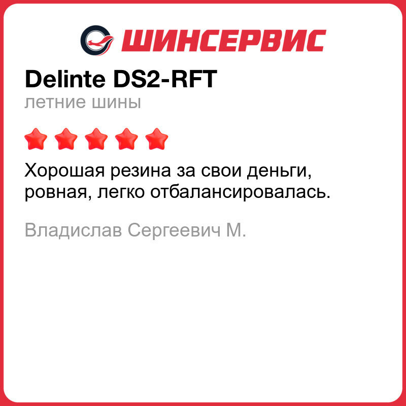 Ниже Вы можете прочитать отзывы на Летняя шина Delinte DS2-RFT (275/40 R19 101Y) RunFlat, ознакомится с подробными характеристиками, посмотреть интересные обзоры и фотографии на Летняя шина Delinte DS2-RFT (275/40 R19 101Y) RunFlat.