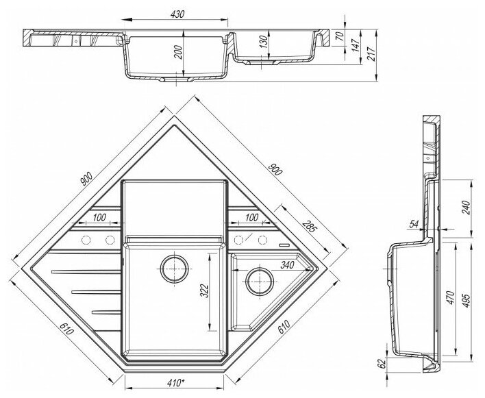 | Глубина мойки | 61 см |