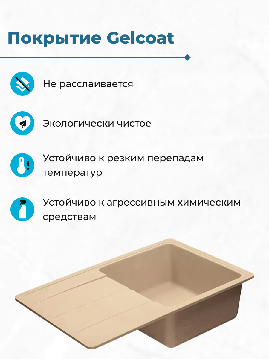 Акватон 1A712832AD240 Аманда Мойка для кухни 78х51 см, с крылом, жемчуг