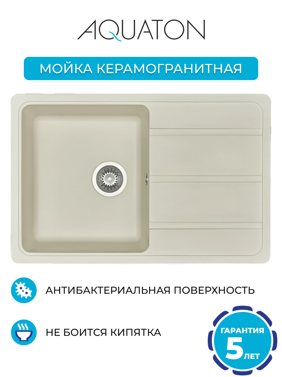 Купить Мойка керамогранитная Aquaton Аманда (780х211х510) одинарная с крылом, жемчуг 1A712832AD240