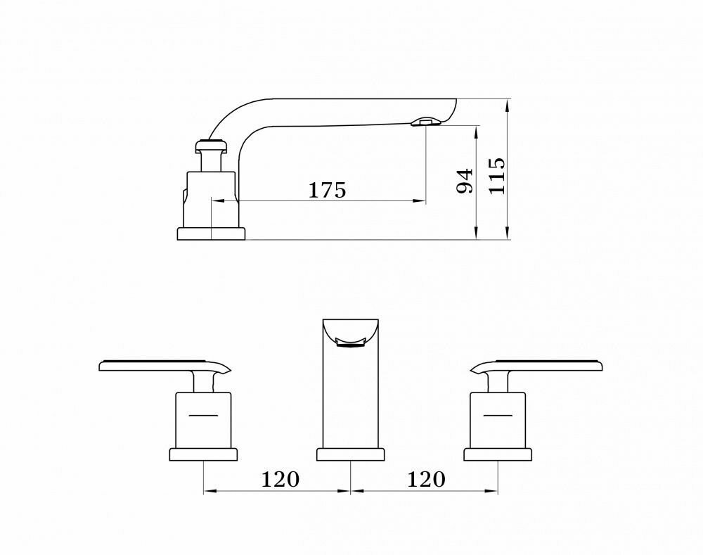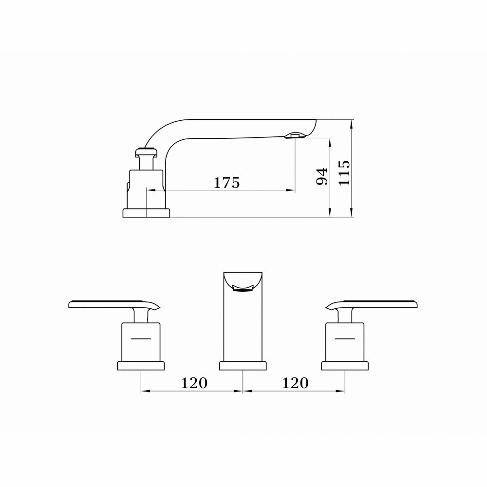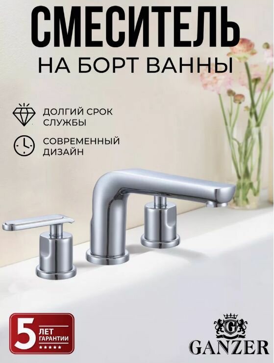 GZ52011 Смеситель Ganzer на борт раковины, 3 отверстия хром