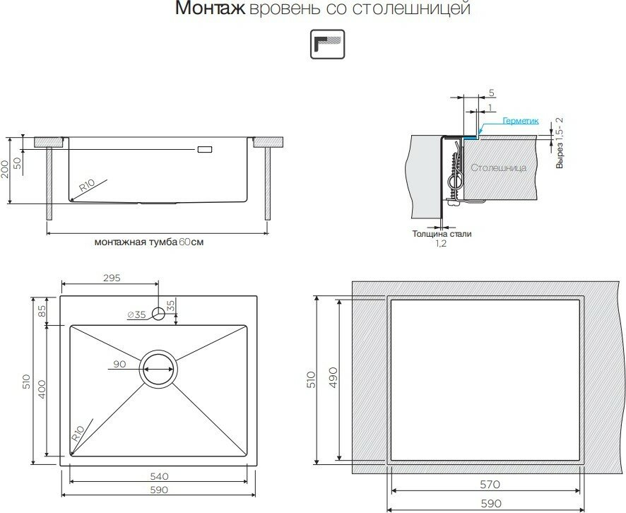 | Установка | врезная |