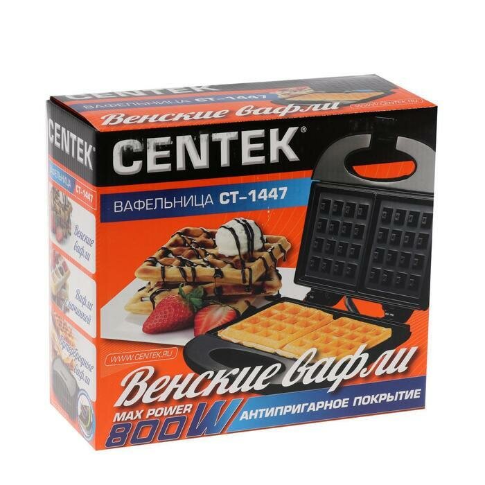 Вафельница Centek CT-1447, 800Вт, венские вафли, анти пригарное покрытие, 220°С, черная
