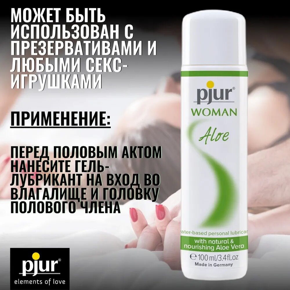 Лубрикант для женщин Pjur Woman Aloe на водной основе с натуральным экстрактом алоэ для гладкого скольжения. интимная косметика, 100 мл.