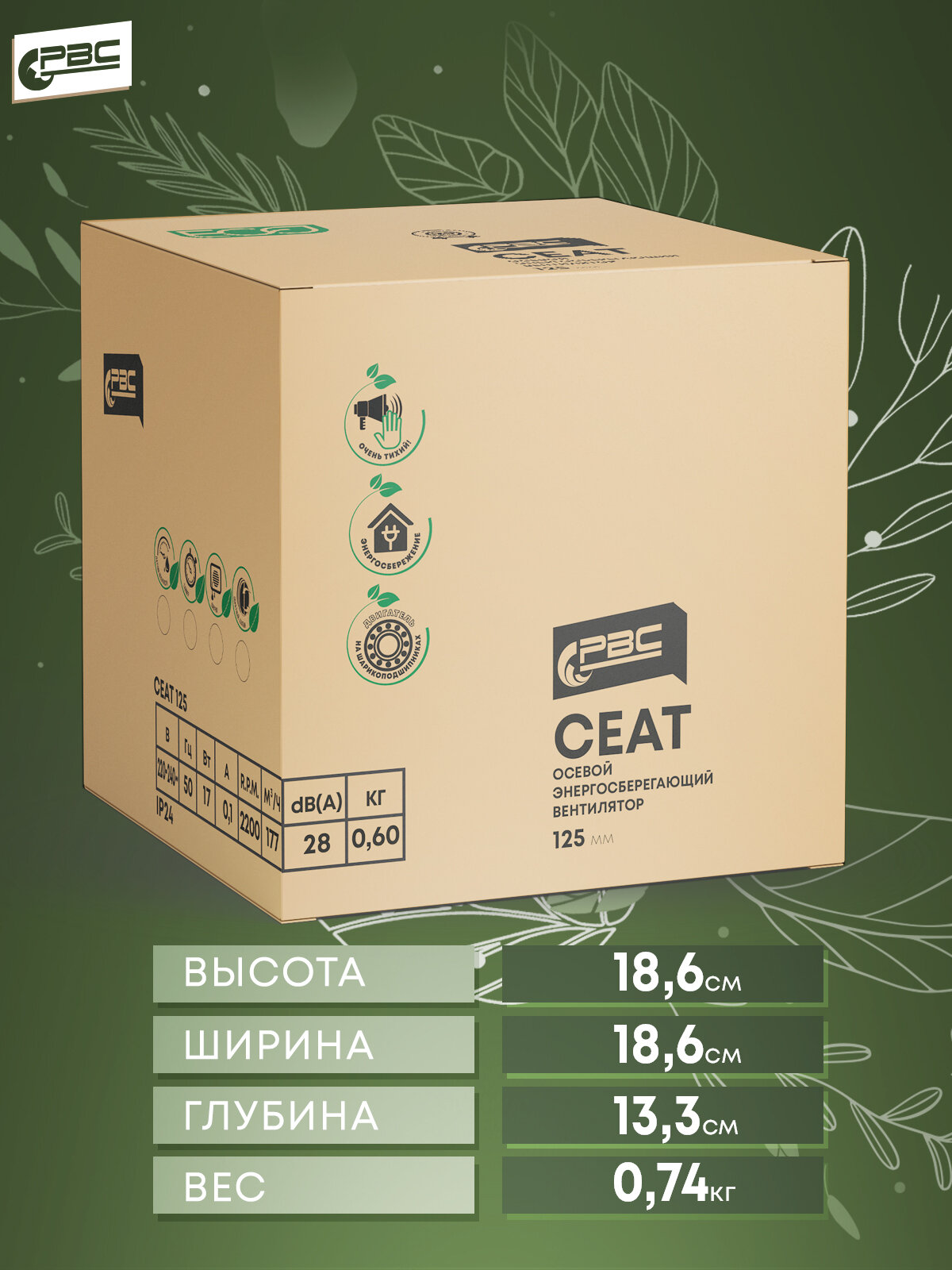 Вентилятор вытяжной "рвс" Сеат 100, d=100 мм, 8 Вт, 24 дБ, канальный, энергосберегающий РВС 9849636 .