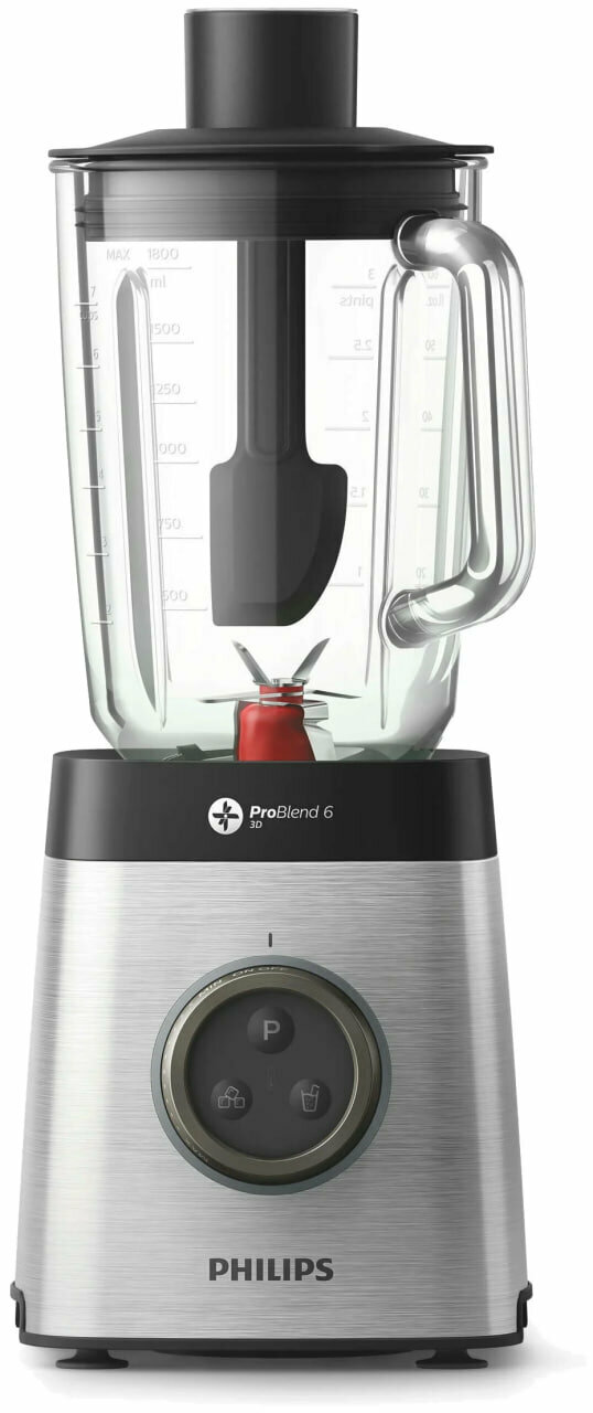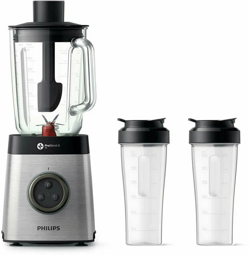 Купить Блендер Philips HR3655/00 (1400 Вт, технология ProBlend 6 3D, стеклянный контейнер 2 литра, 2 чашки для питья, можно мыть в посудомоечной машине), нержавеющая сталь