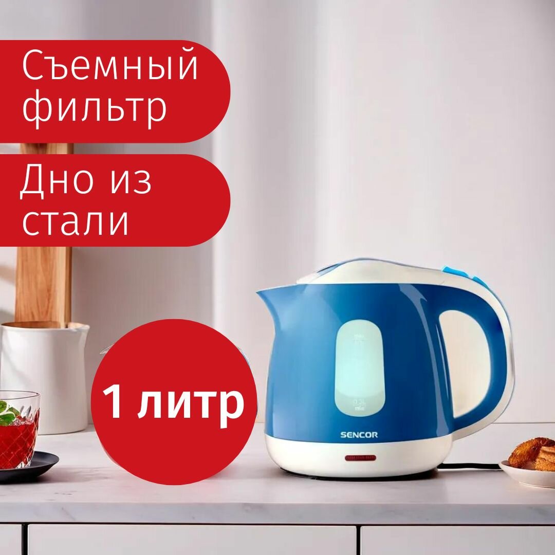 Электрический чайник Sencor SWK 1017TQ,1100 Вт, 1л, голубой