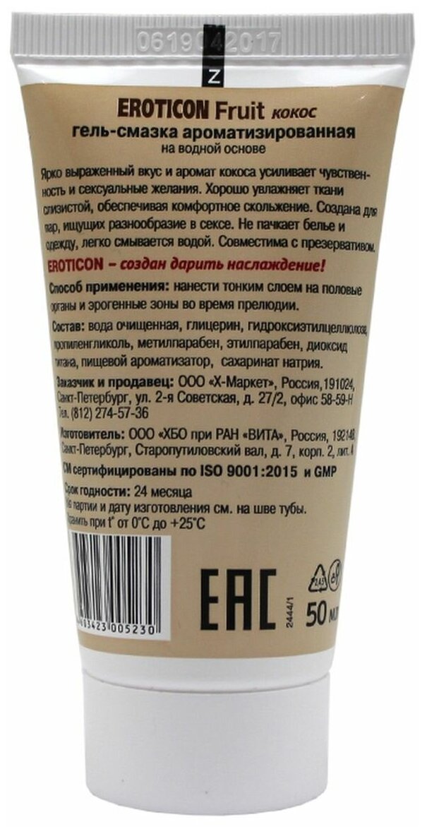 Гель -смазка Eroticon Fruit кокос, 50 мл интересное: