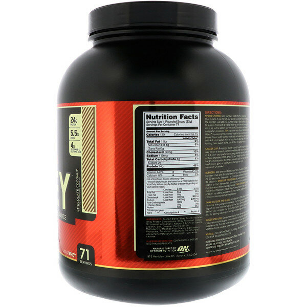 СохранитьOptimum Nutrition, Gold Standard 100% Whey, со вкусом шоколада и кокоса, 2,27 кг (5 фунтов) интересное:
