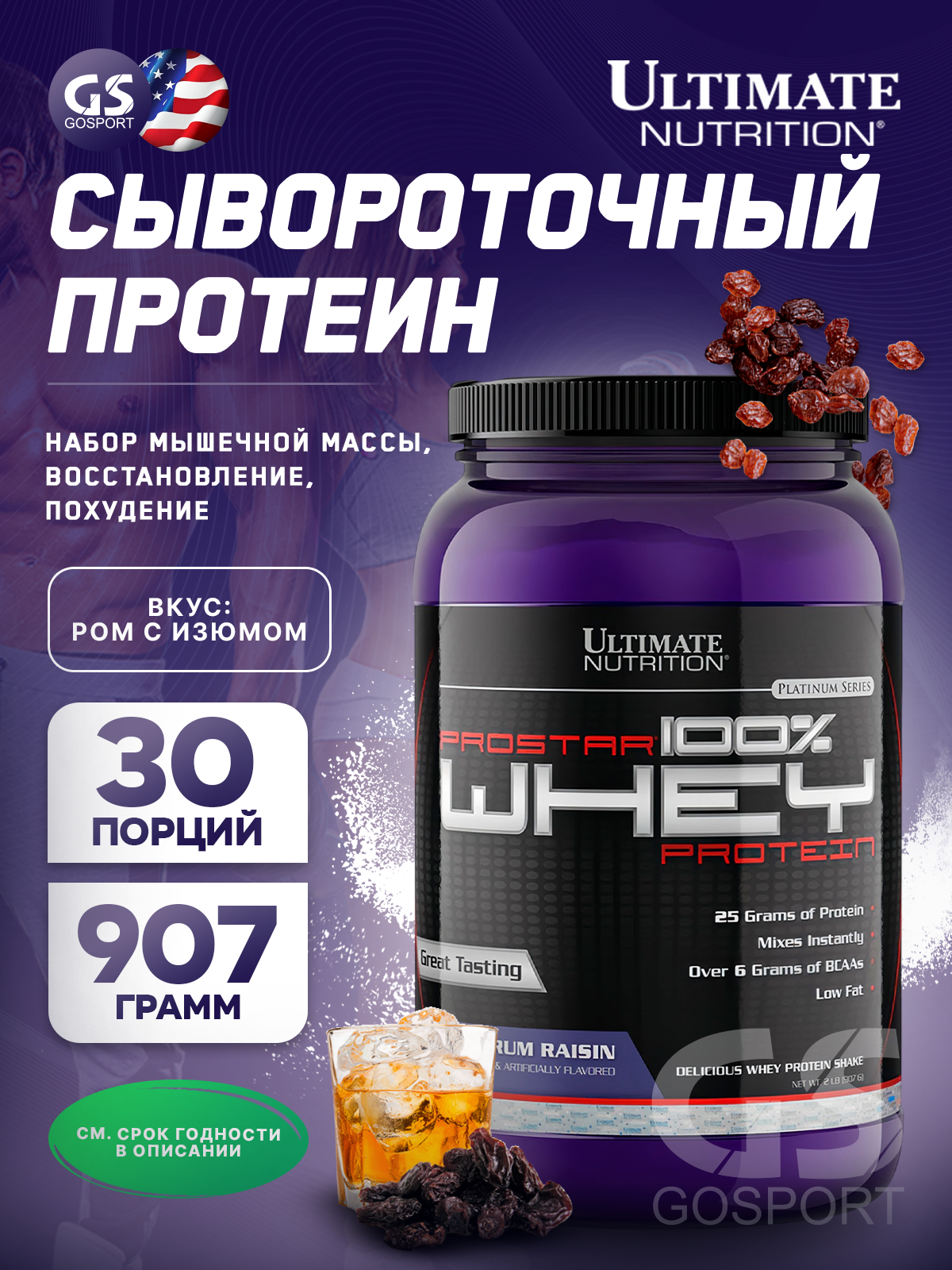 Ultimate Nutrition, Prostar 100% Whey Protein (2.27-2.39 кг) (ром с изюмом)