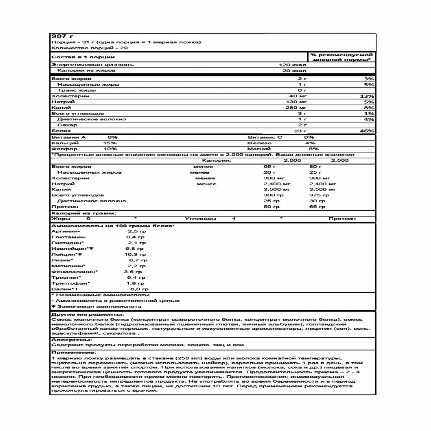 Содержит весь необходимый аминокислотный спектр Плюсы: цена, вкус, консистенция |