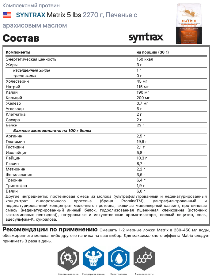 СохранитьМногокомпонентный протеин Syntrax Matrix 2270 гр Печенье с Арахисовым маслом интересное: