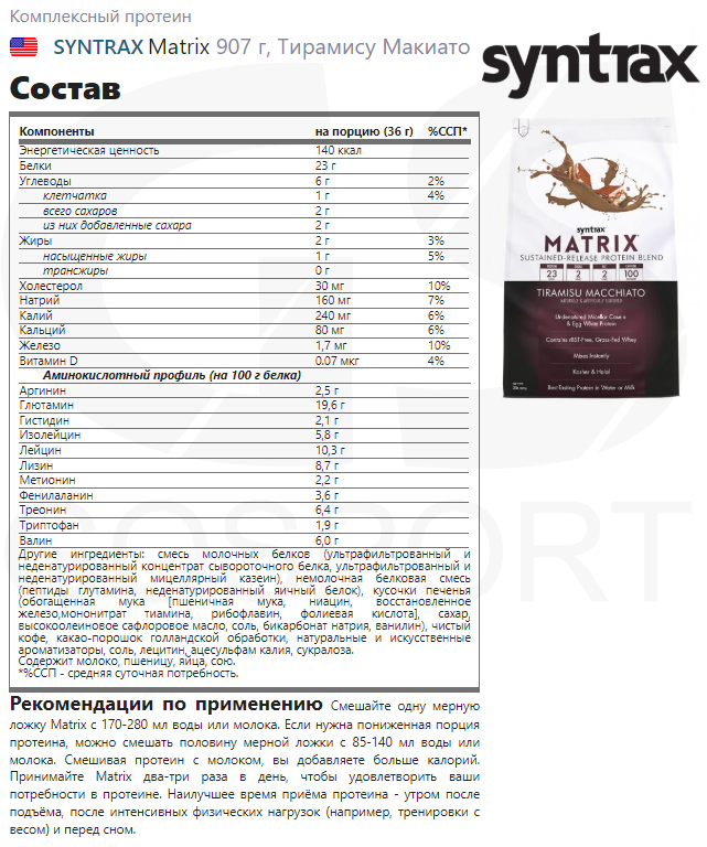 Ниже Вы можете прочитать отзывы на Многокомпонентный протеин Syntrax Matrix 2.0 - 907 грамм (2lb), тирамису макиато, ознакомится с подробными характеристиками, посмотреть интересные обзоры и фотографии на Многокомпонентный протеин Syntrax Matrix 2.0 - 907 грамм (2lb), тирамису макиато.