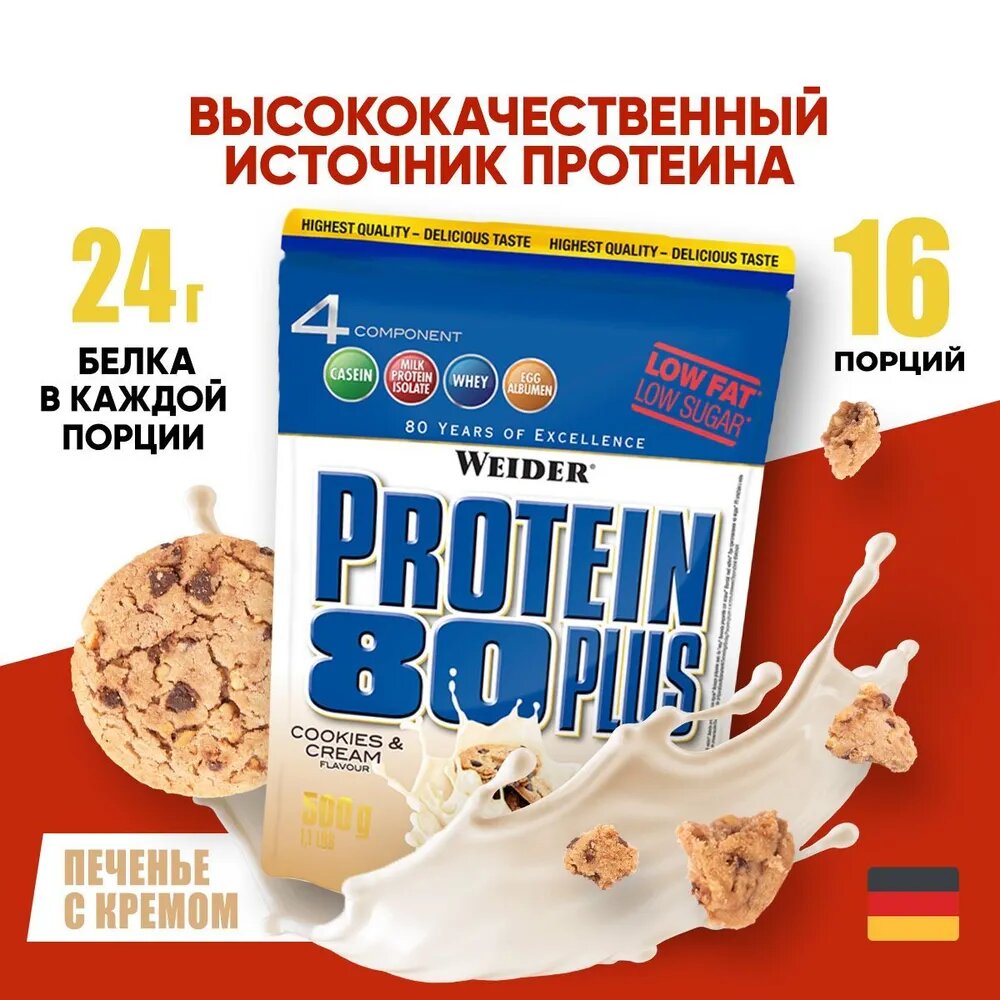 Купить Протеиновый коктейль WEIDER Protein 80 Plus, порошок, 500 г, печенье-крем