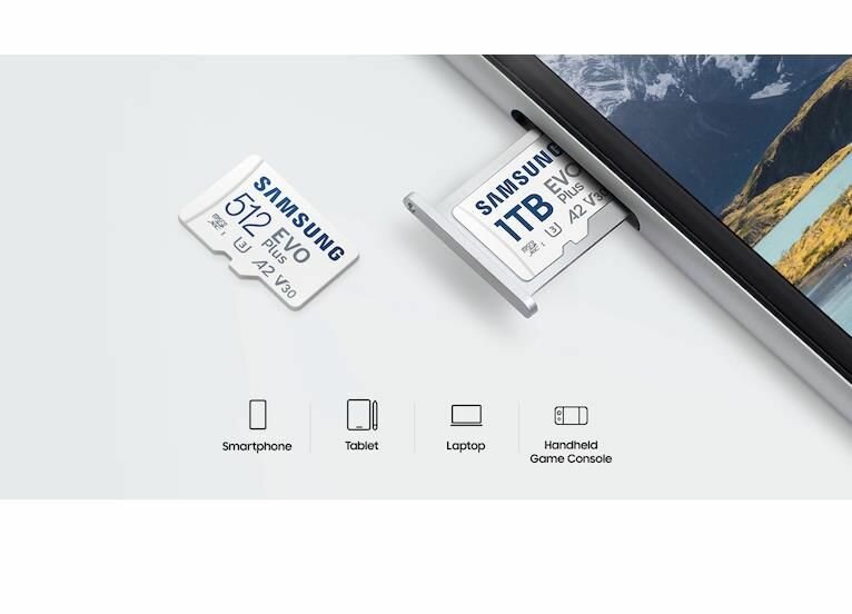 Карта памяти Samsung EVO Plus microSDHC 512 ГБ A2, UHS Class 1 запись - 130 Мбайт/сек