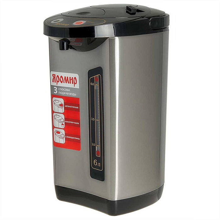 Термопот 6 л яромир ЯР-1900, 900 Вт, нерж. корпус, 3 способа подачи воды
