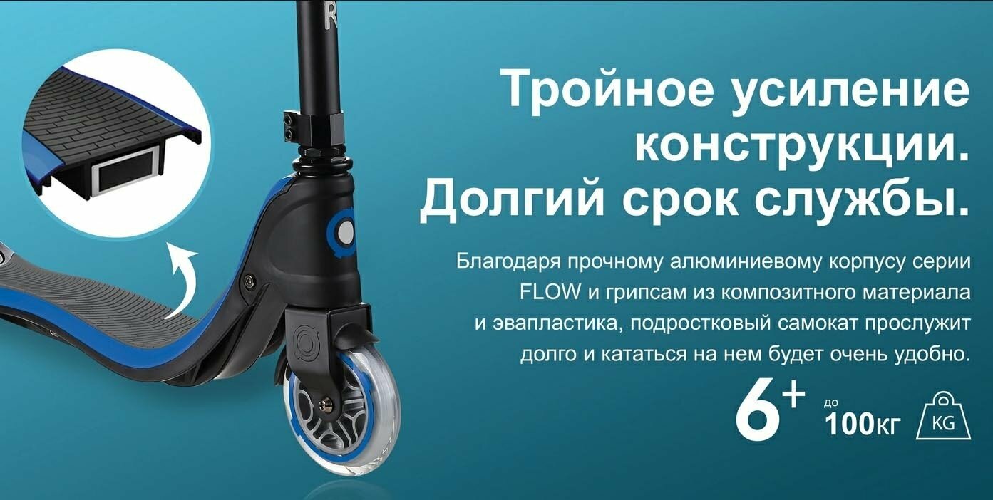 Самокат Globber Flow 125 LIGHTS светящиеся колеса (синий (472-100))