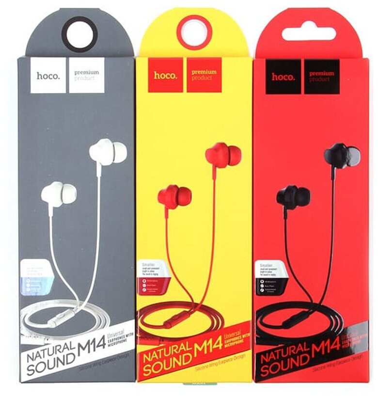 Наушники M14 Universal Earphone, вакуумные с микрофоном, HOCO, красные