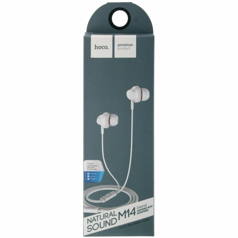 Проводные наушники с микрофоном, внутриканальные, Hoco M14 Natural sound universal, 3.5 Jack, белые